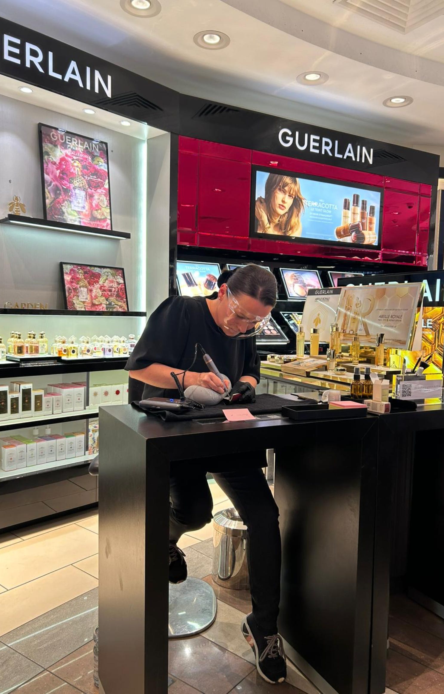 Die Gravur erfolgt von Hand mit kleinem tragbaren Gerät.
